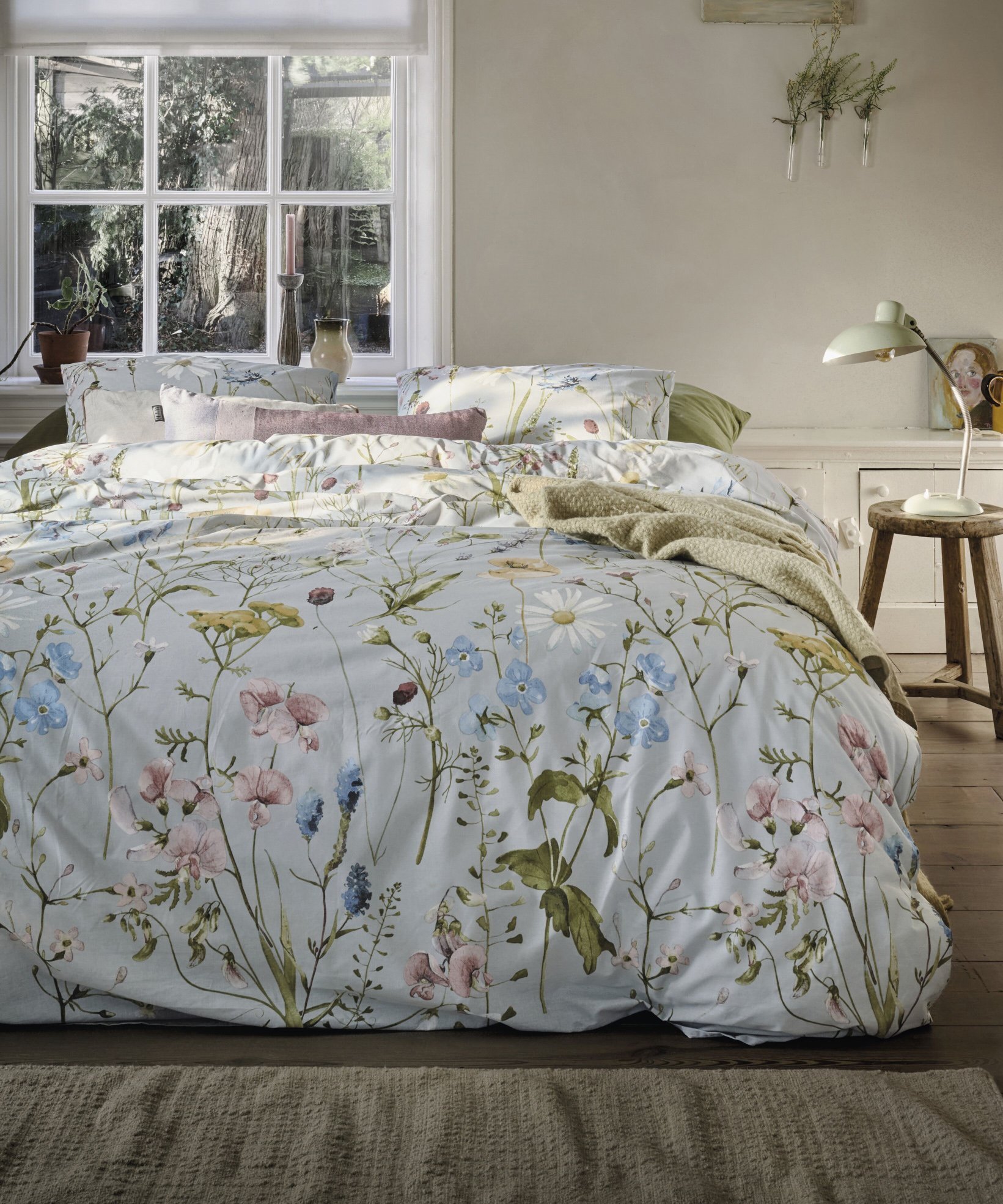 Bloom Blue gultas veļa komplekts no Ariadne at Home kolekcijas piešķir guļamistabai dzīvīgumu ar spilgtu magoņu, rudzupuķu, margrietiņu un citu pļavas ziedu rakstu. Dizains rada mierīgu lauku noskaņu. Augstas kvalitātes kokvilnas audums, tas ir izturīgs...