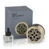 – Noņemiet difuzora priekšējo vāciņu, zelta krāsā. Uzmanīgi ievietojiet smaržīgās eļļas pudeli ierīces aizmugurējā daļā. Pareizi ieliekot, vajadzētu atskanēt klikšķim. Uzlieciet atpakaļ priekšējo vāciņu,