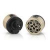 – Noņemiet difuzora priekšējo vāciņu, zelta krāsā. Uzmanīgi ievietojiet smaržīgās eļļas pudeli ierīces aizmugurējā daļā. Pareizi ieliekot, vajadzētu atskanēt klikšķim. Uzlieciet atpakaļ priekšējo vāciņu,