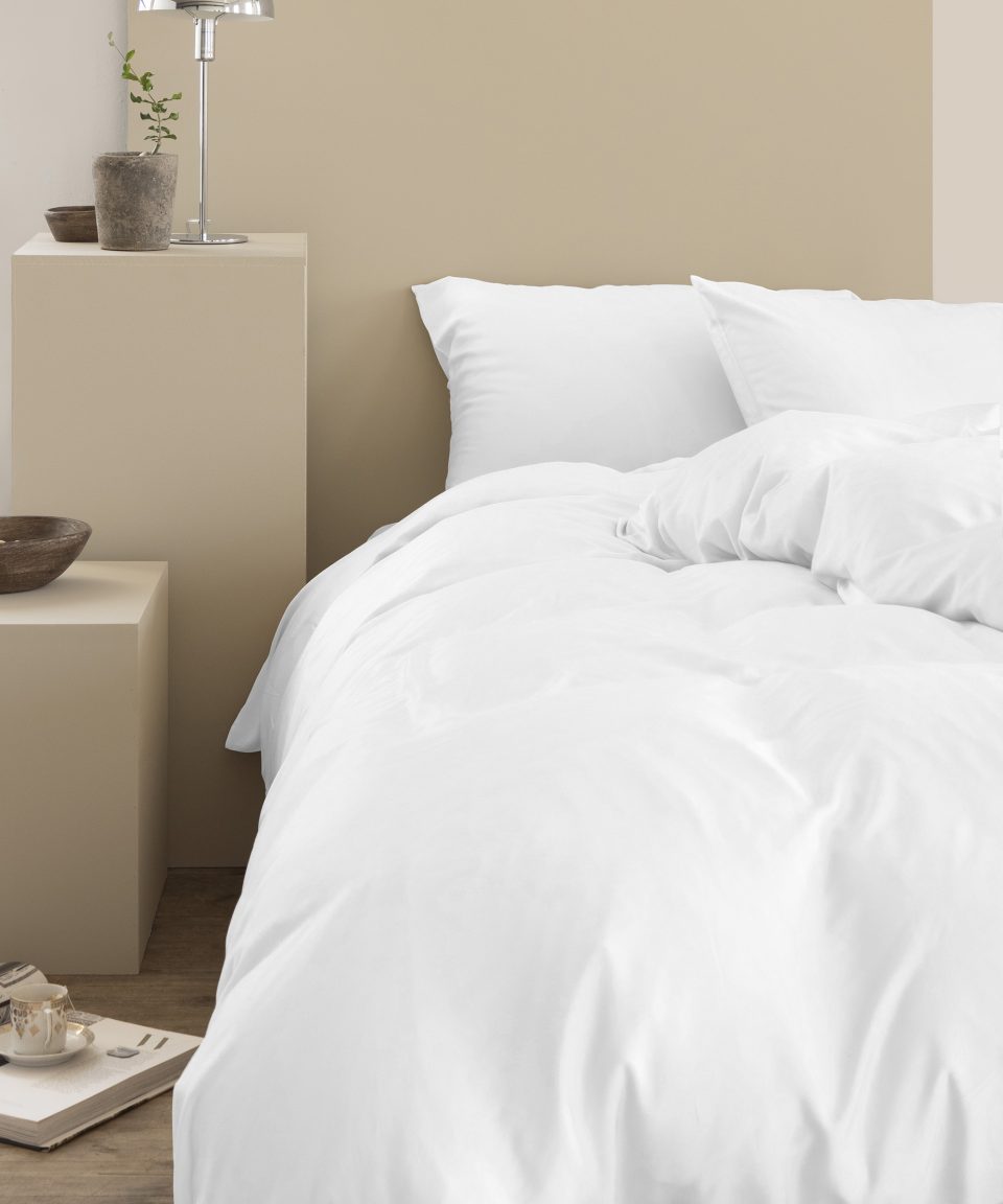 Klasisks risinājums guļamistabai ar Turiform Enjoy gultasveļu baltā krāsā. Šī gultasveļa ir izgatavota no 100% bambusa, un tā ir austa ar satīna aušanas veidu, lai tā būtu izturīga un zīdaini mīksta.
