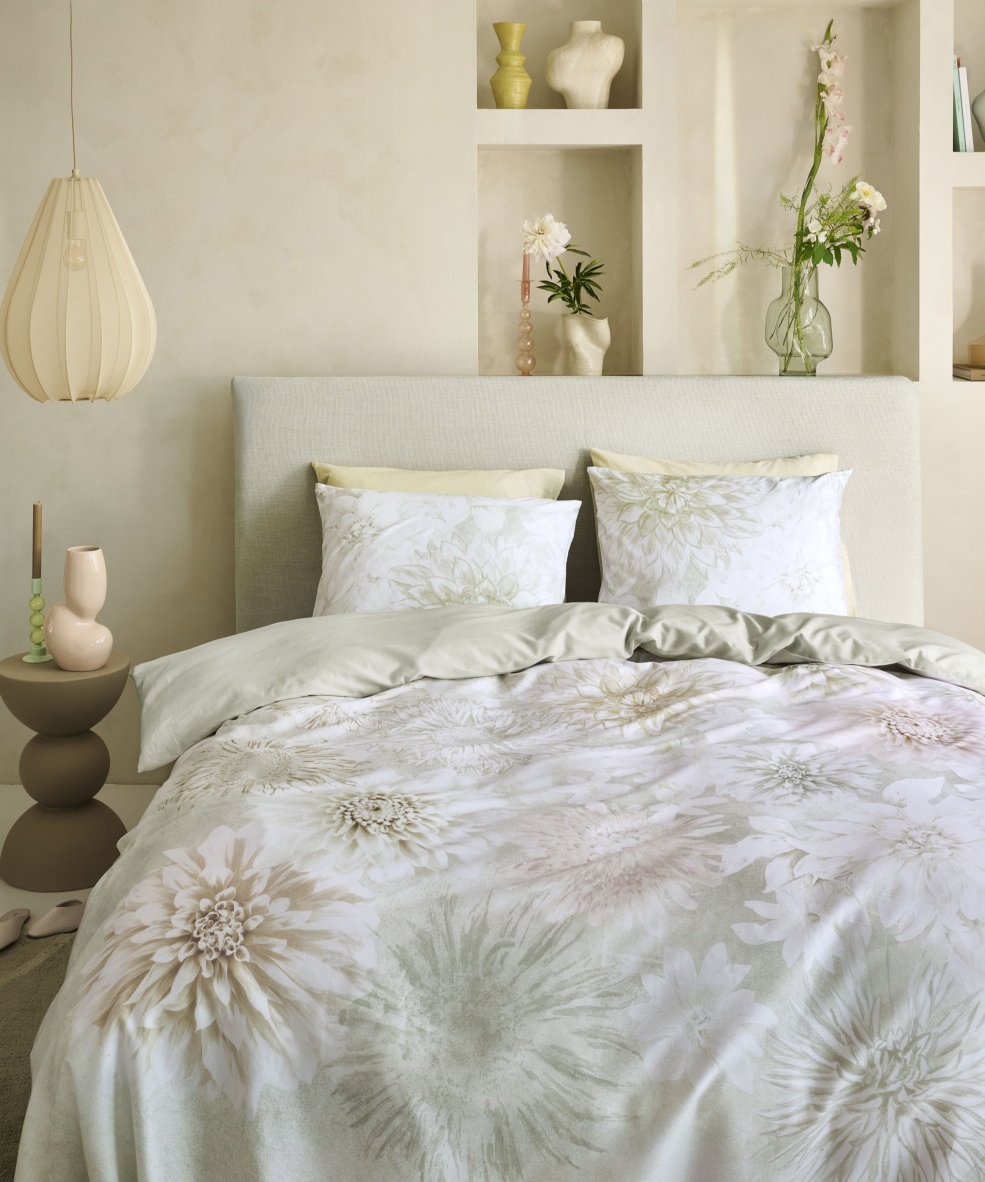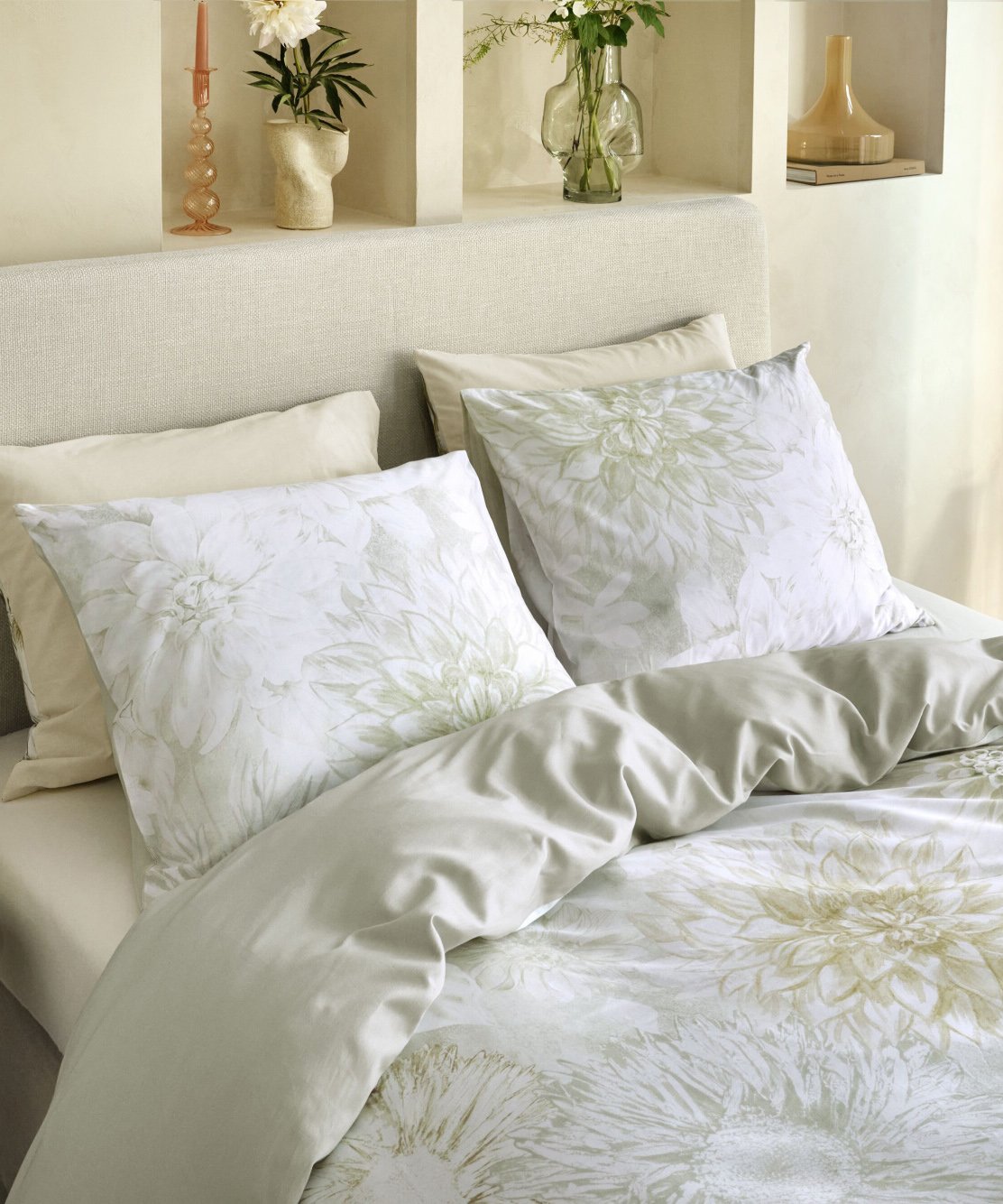 Gaisīgs ziedu raksts ar maigu pasteļtoņu pāreju, gultas veļas komplekts Fede Pastel mājīgai atmosfērai. Dizains, kas iederēsies arī “Japandi” stila interjerā. Komplekta otra puse bēšā krāsā ar nedaudz zaļganu nokrāsu. Pateicoties satīna aušanas veidam, audums ir ļoti mīksts un ar satīnam raksturīgu spīdumu.