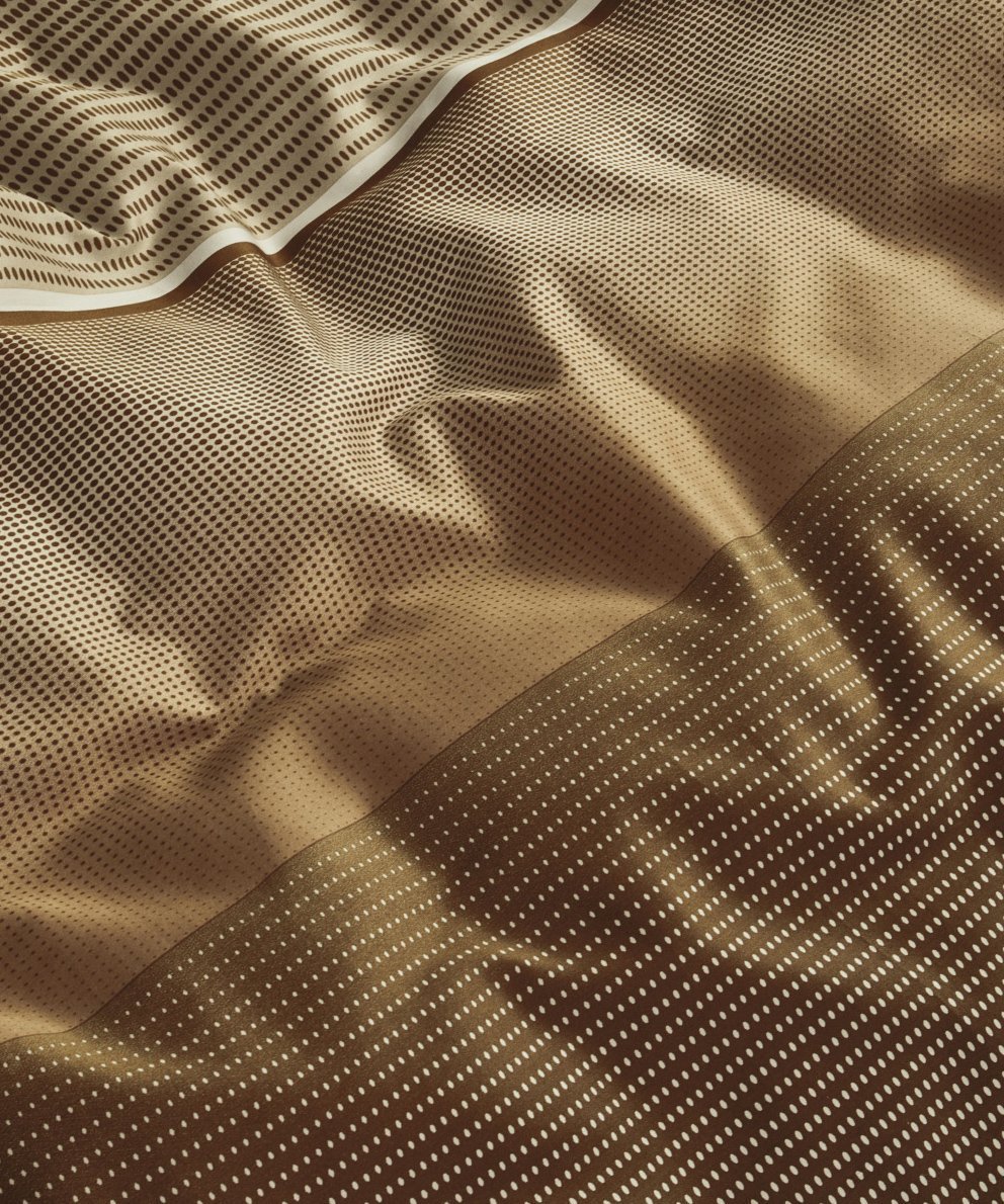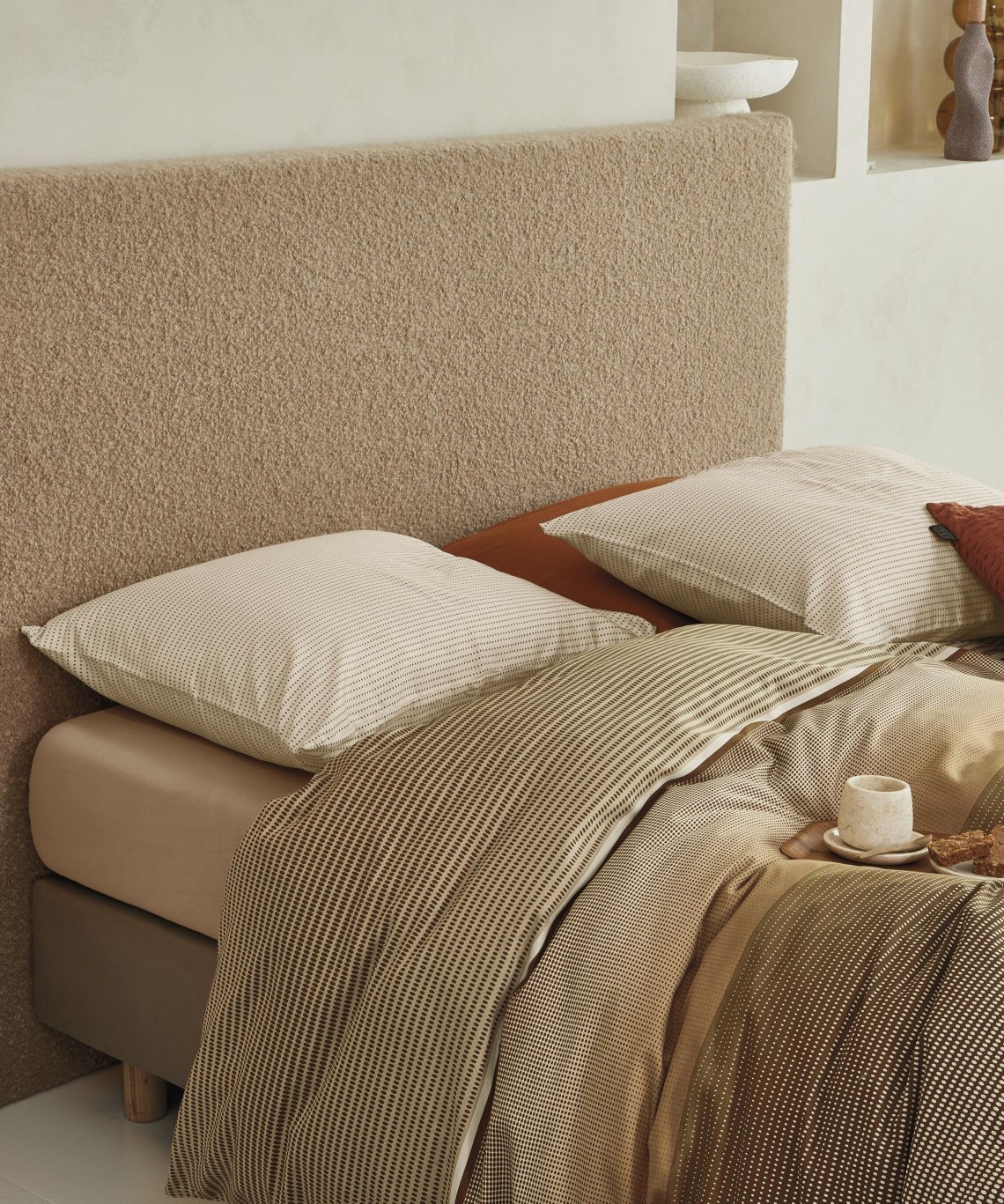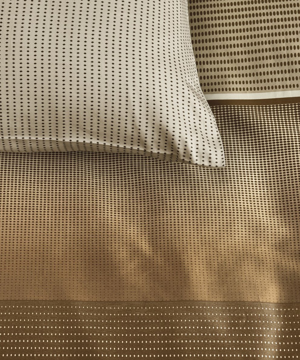 Jenn gultas veļas komplekts apvieno mūsdienīgu eleganci ar smalkām grafiskām detaļām – ideāli piemērots modernai guļamistabai. Harmoniskais krāsu pārejas efekts brūnos un bēšos toņos, un glītā svītru struktūra padara šo dizainu par labu izvēli tiem, kas vēlas ne pārāk uzkrītošu rakstu, bet stilīgu un mierīgu noskaņu. Pateicoties satīna aušanas veidam, audums ir vienreizēji mīksts un ar satīnam raksturīgu spīdumu. Abas puses vienādas, ar rakstu.