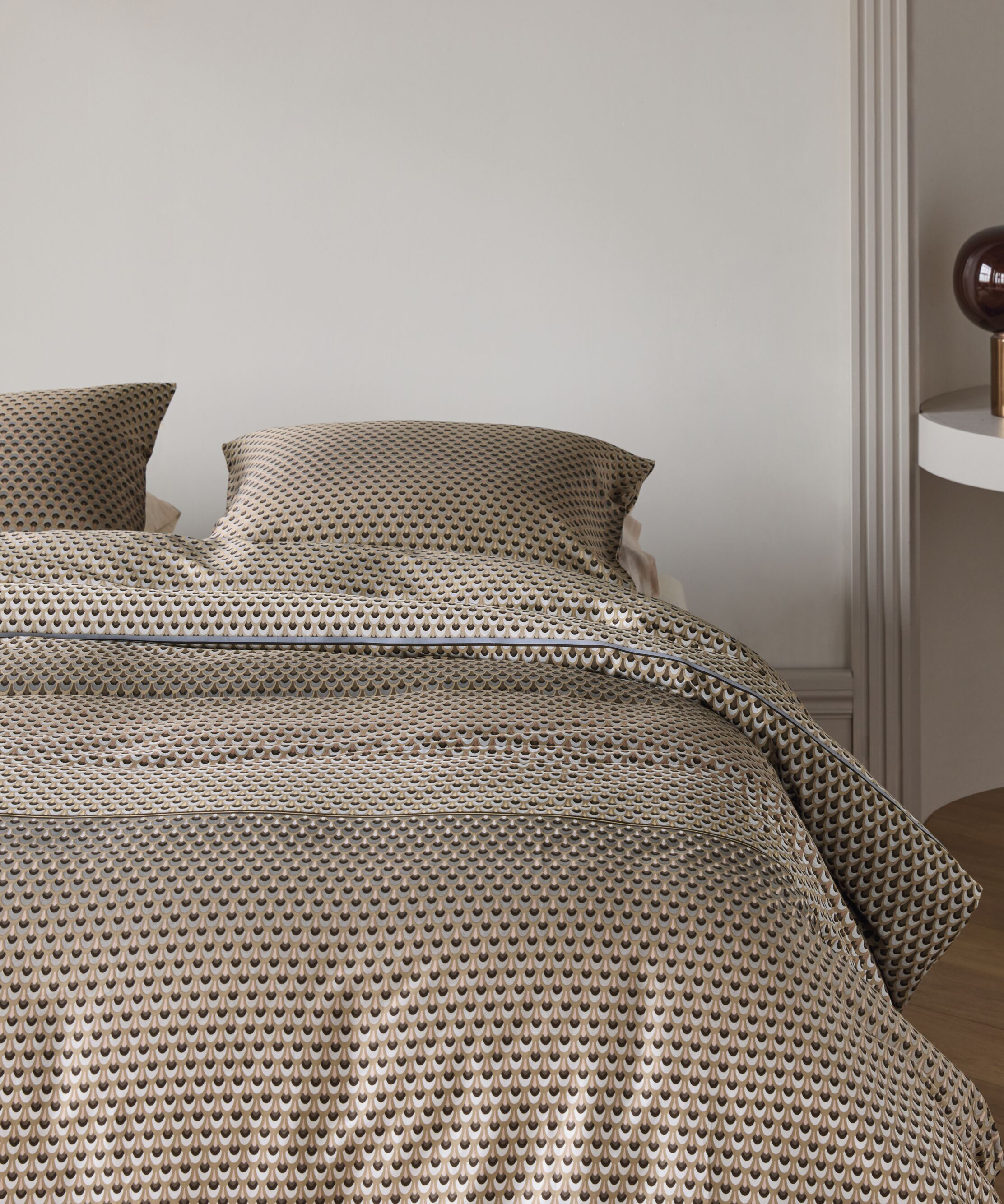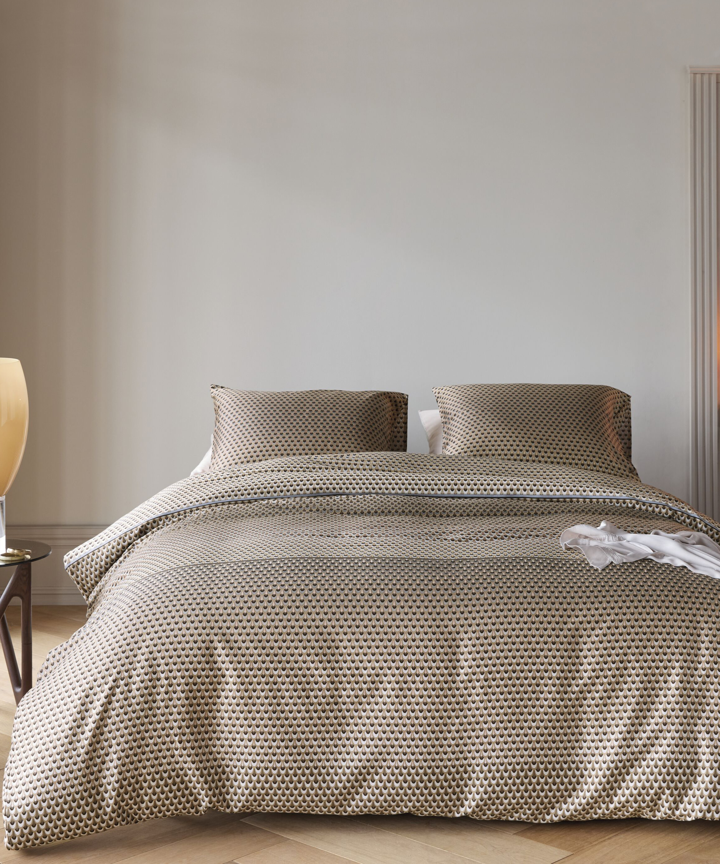 Lofty Natural gultas veļas komplekts no Kardol by Beddinghouse kolekcijas, ar pāva spalvai raksturīgu zīmējumu, brunos, pelēkos un bēšos toņos, piešķir greznu un dekoratīvu izskatu. Bagātīgā krāsu un rakstu kombinācija rada harmonisku un elegantu noskaņu. Pateicoties satīna aušanas veidam, audums ir vienreizēji mīksts un ar satīnam raksturīgu spīdumu. Abas puses vienādas, ar rakstu.