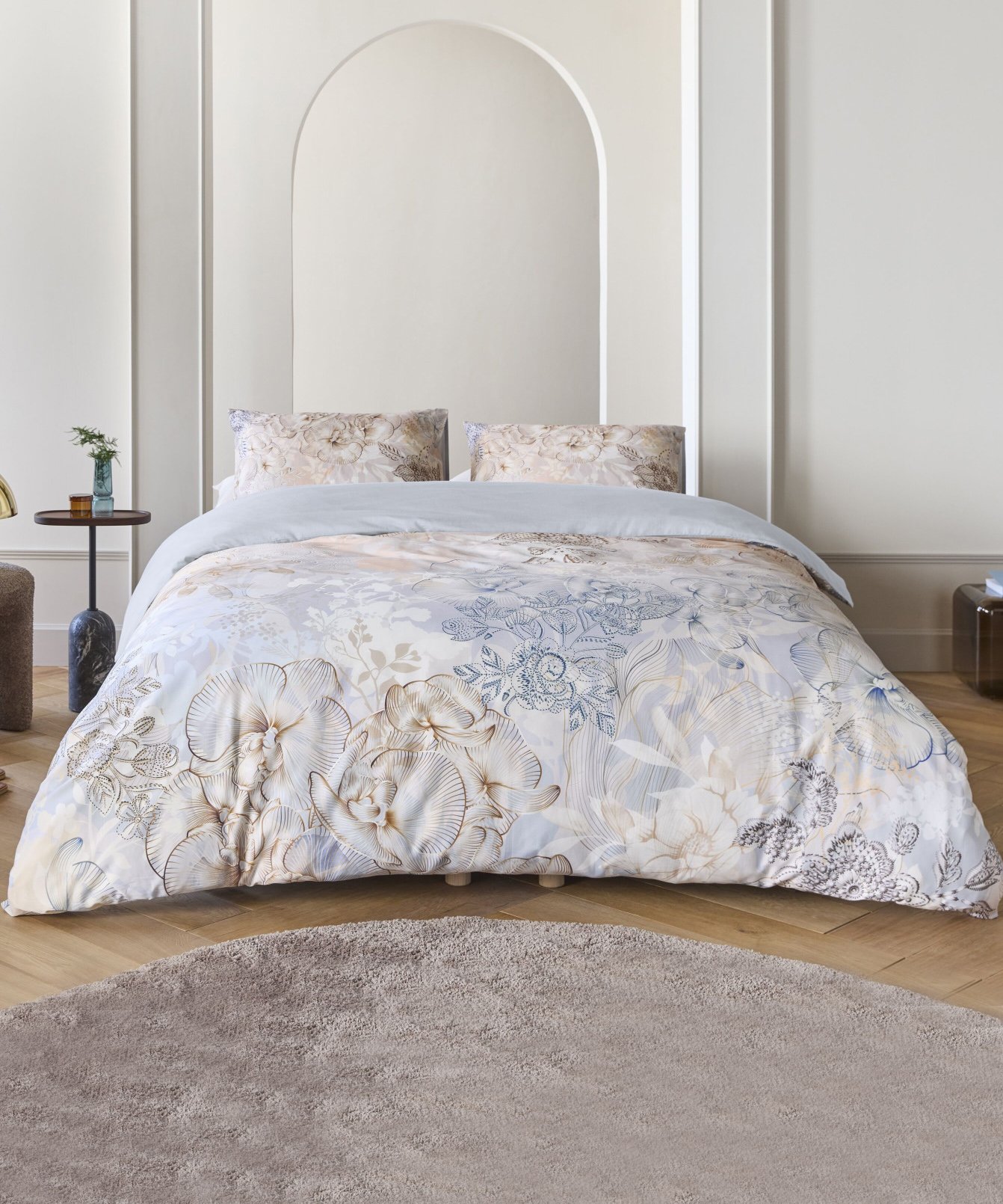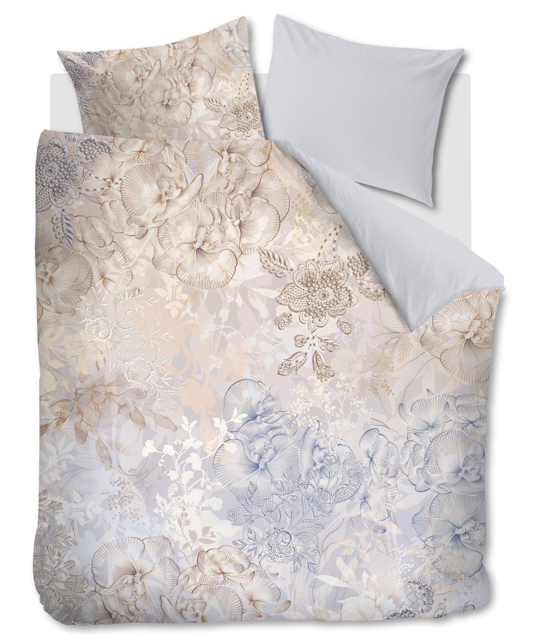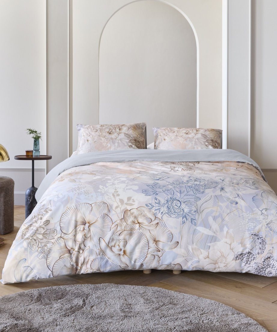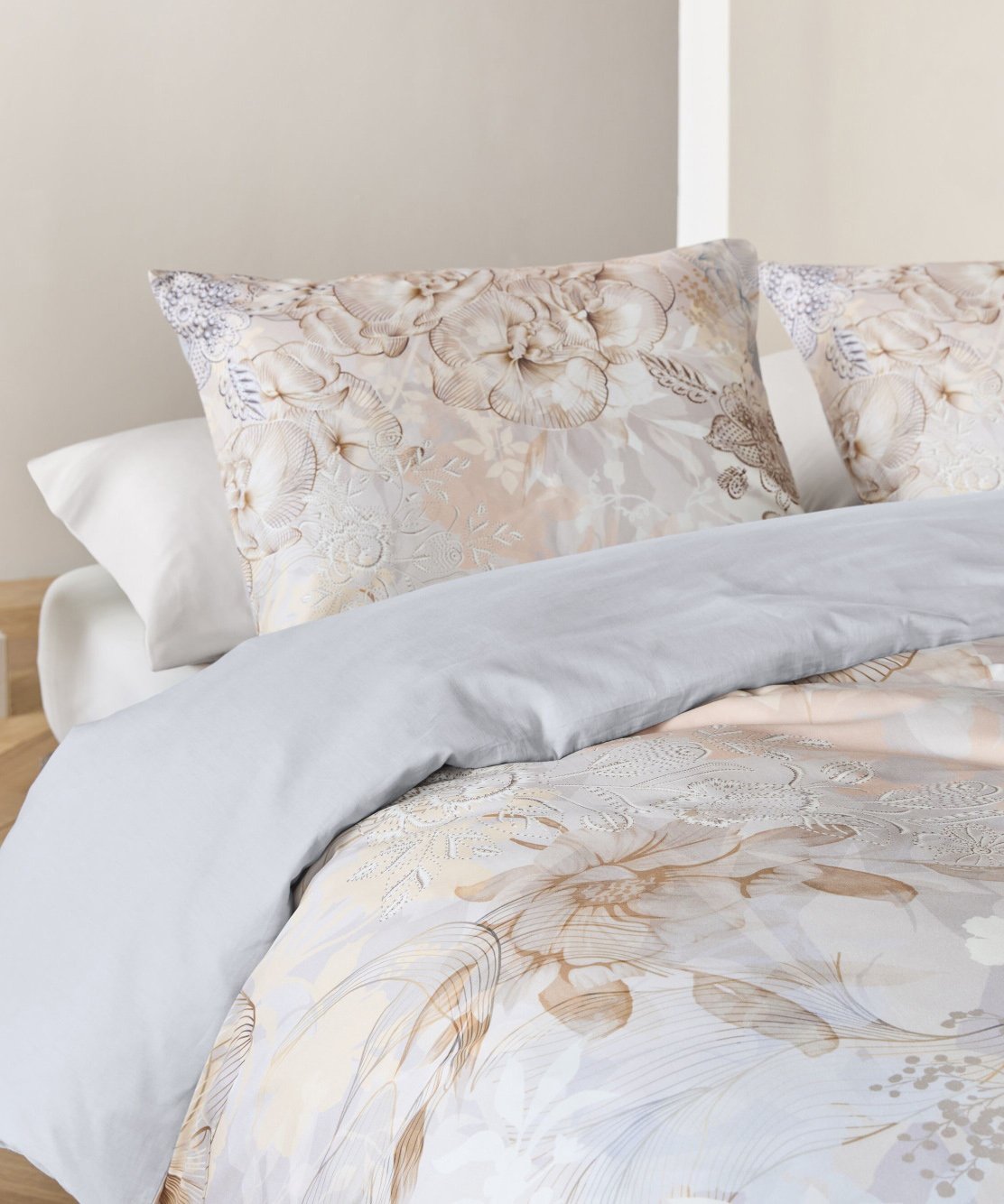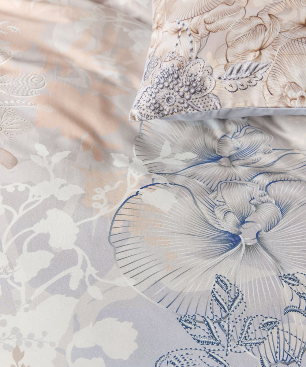 Profil Pastel gultas veļas komplekts ar smalku ziedu motīvu, gracioziem līniju zīmējumiem un maigām krāsu pārejām. Svaigā pasteļtoņu gamma – elegancei un gaisīgai noskaņai jūsu guļamistabā. Vienkrāsainā otra puse, zilgani pelēcīgā tonī, ļauj izvēlēties mierīgāku stilu. Pateicoties satīna aušanas veidam, audums ir vienreizēji mīksts un ar satīnam raksturīgu spīdumu.